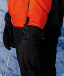 Waterproof and breathable stretch fabric – Ared 20/20. Water-repellent finish. Thinsulate lined. Warm scrim lining. Synthetic nubuck thumb. High-warmth padding. Textured gripped palm and thumb. Elasticated wrist. Adjustable cuffs. Shockcord and toggle lower wrist adjustment. Secure clip attachment.